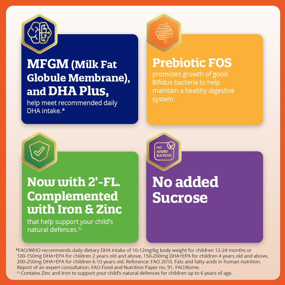 - With2’-FL. Complemented with Iron and Zinc that help support your child’s natural defences.^.