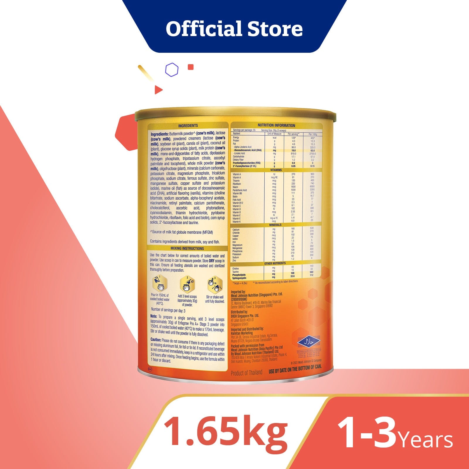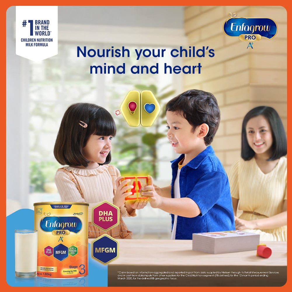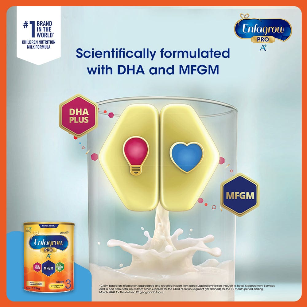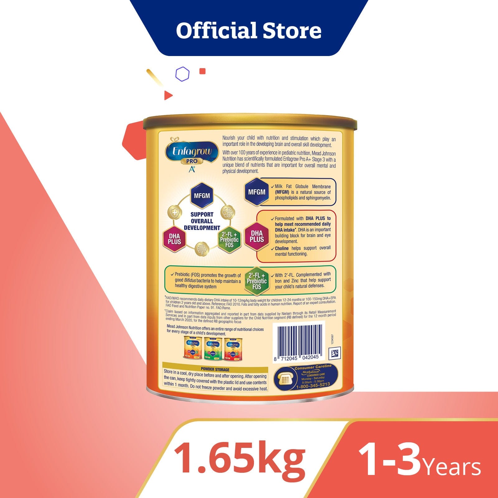 - With over 100 years of experience in pediatric nutrition, Mead Johnson Nutrition has scientifically formulated EnfagrowPro A+ Stage 3 with a unique blend of nutrients that are important for overall mental and physical development.